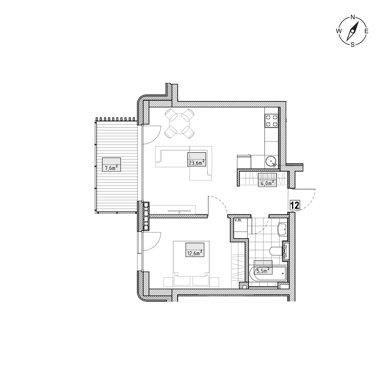 | No. 12 | 2 | 2 | 1 | 53.3 m2 | 3 200 EUR | 170 560 EUR | Available | Balcony | Apply |