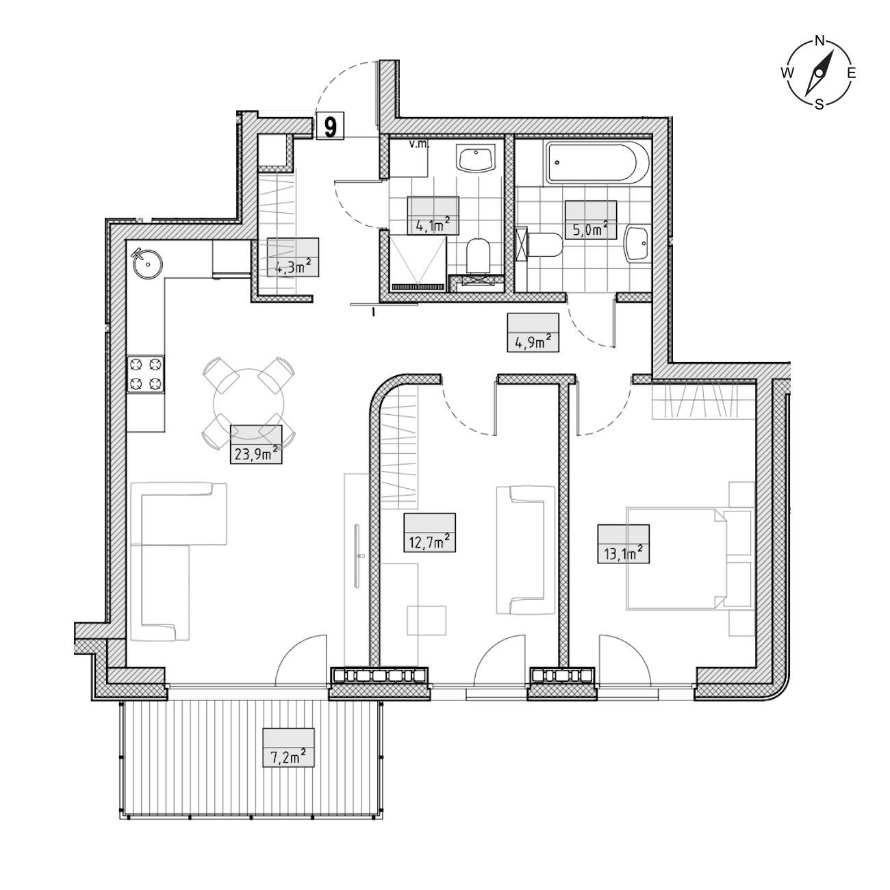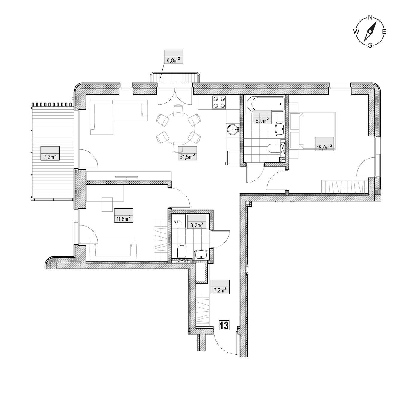 | No. 13 | 2 | 3 | 2 | 81.7 m2 | 3 200 EUR | 261 440 EUR | Available | Balconies - 2 | Apply |