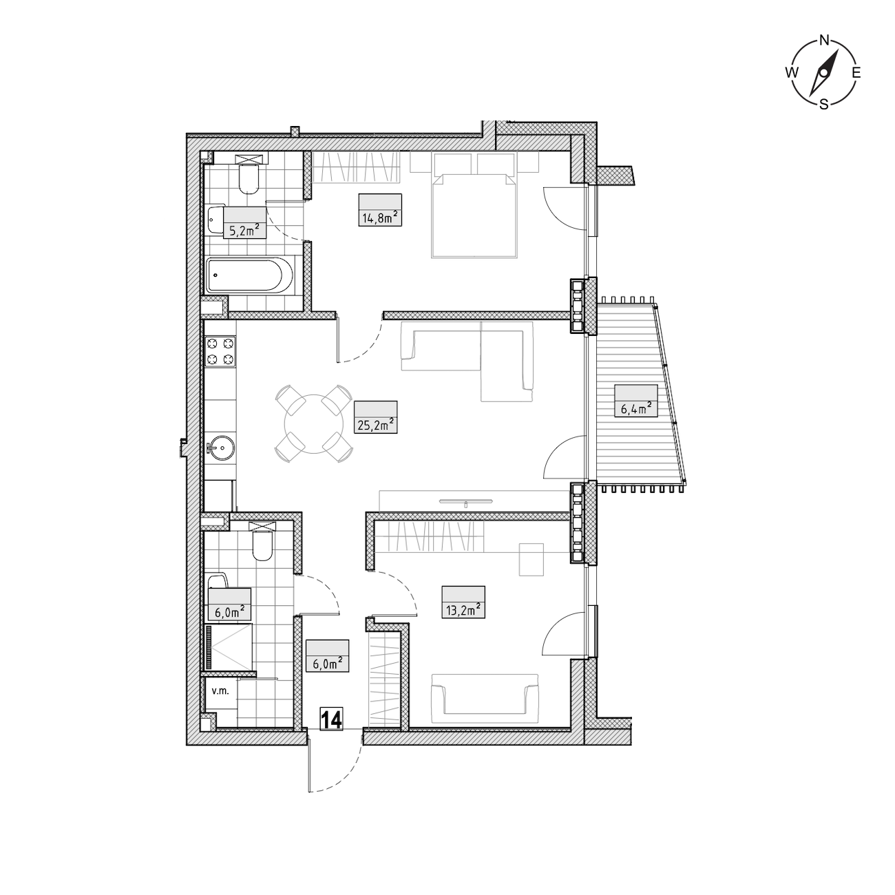| No. 14 | 2 | 3 | 2 | 76.8 m2 | 3 200 EUR | 245 760 EUR | Available | Balcony | Apply |