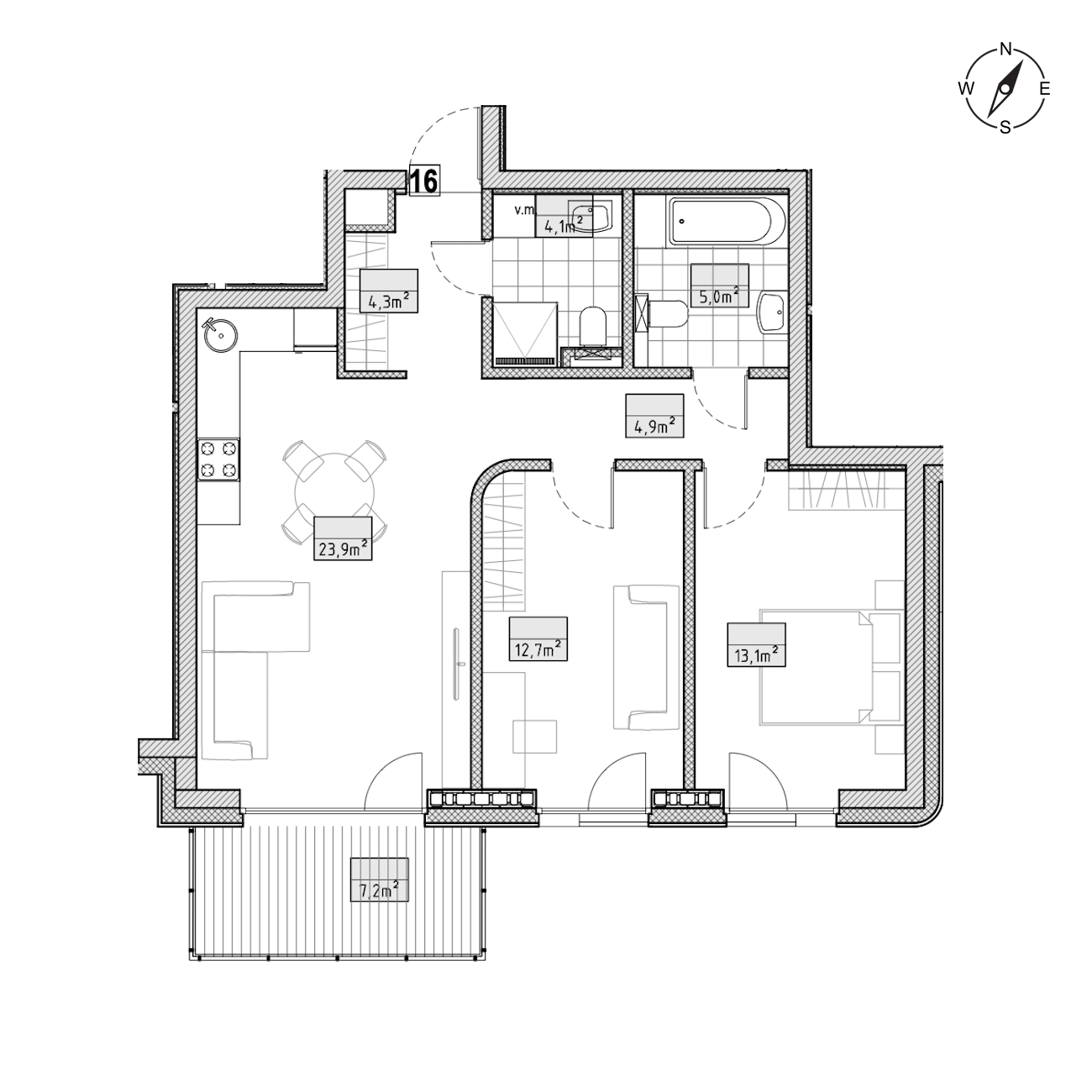 | No. 16 | 3 | 3 | 2 | 75.2 m2 | 3 200 EUR | 240 640 EUR | Available | Balcony | Apply |