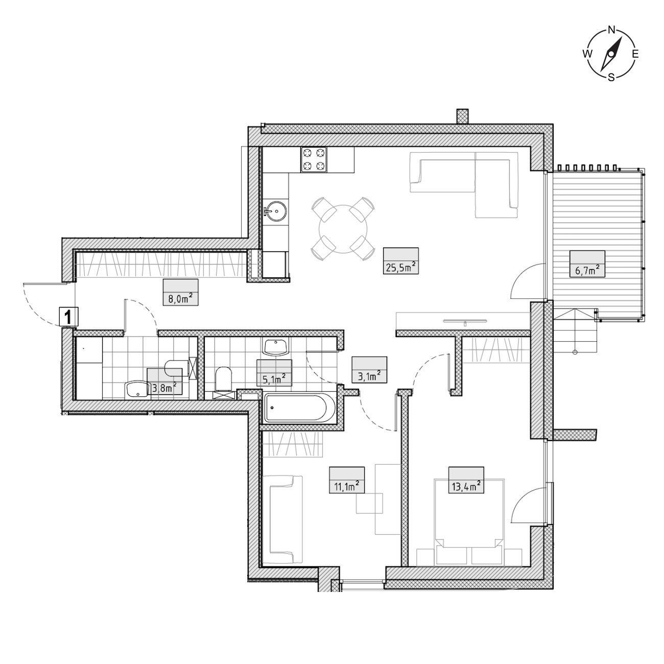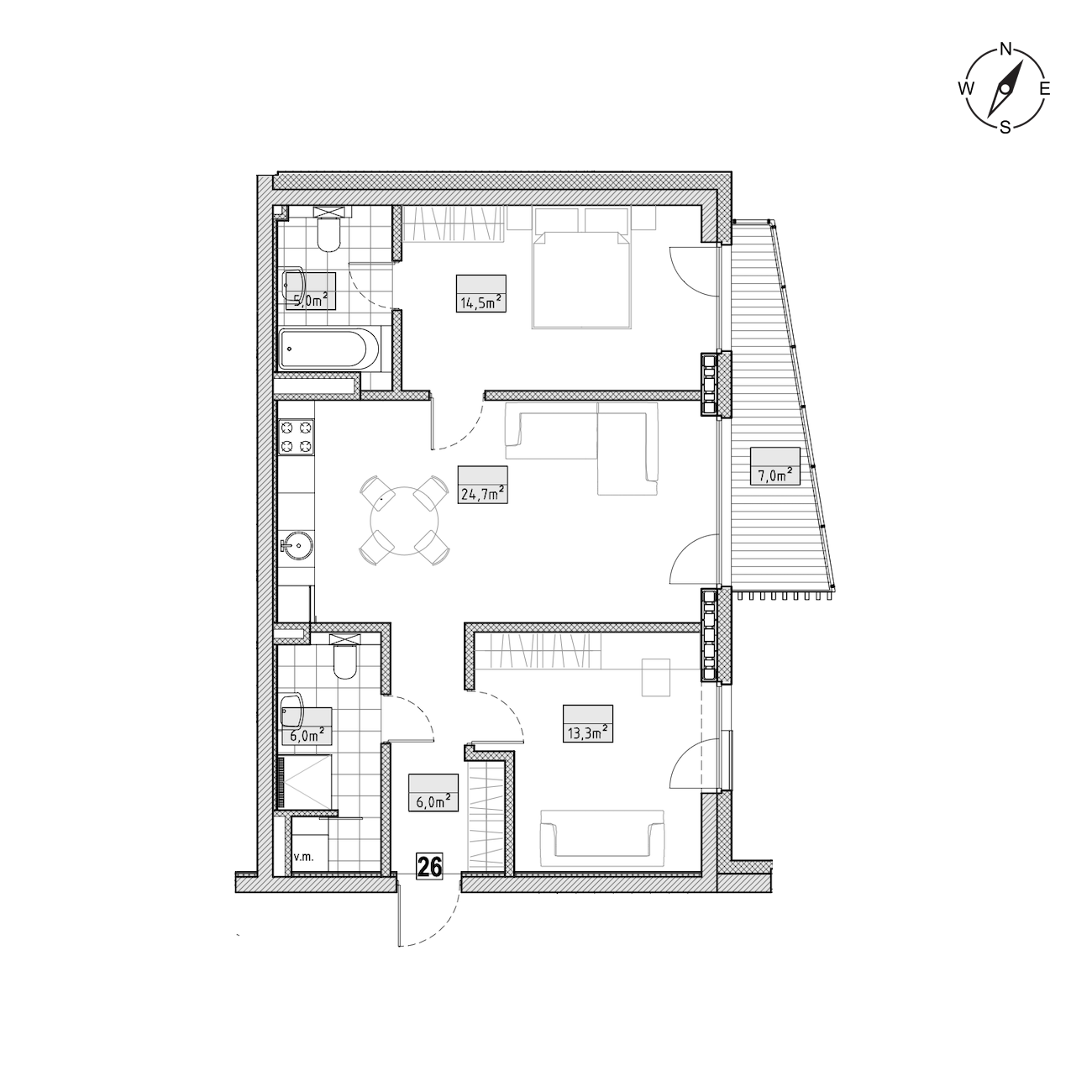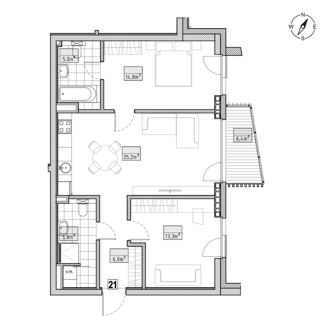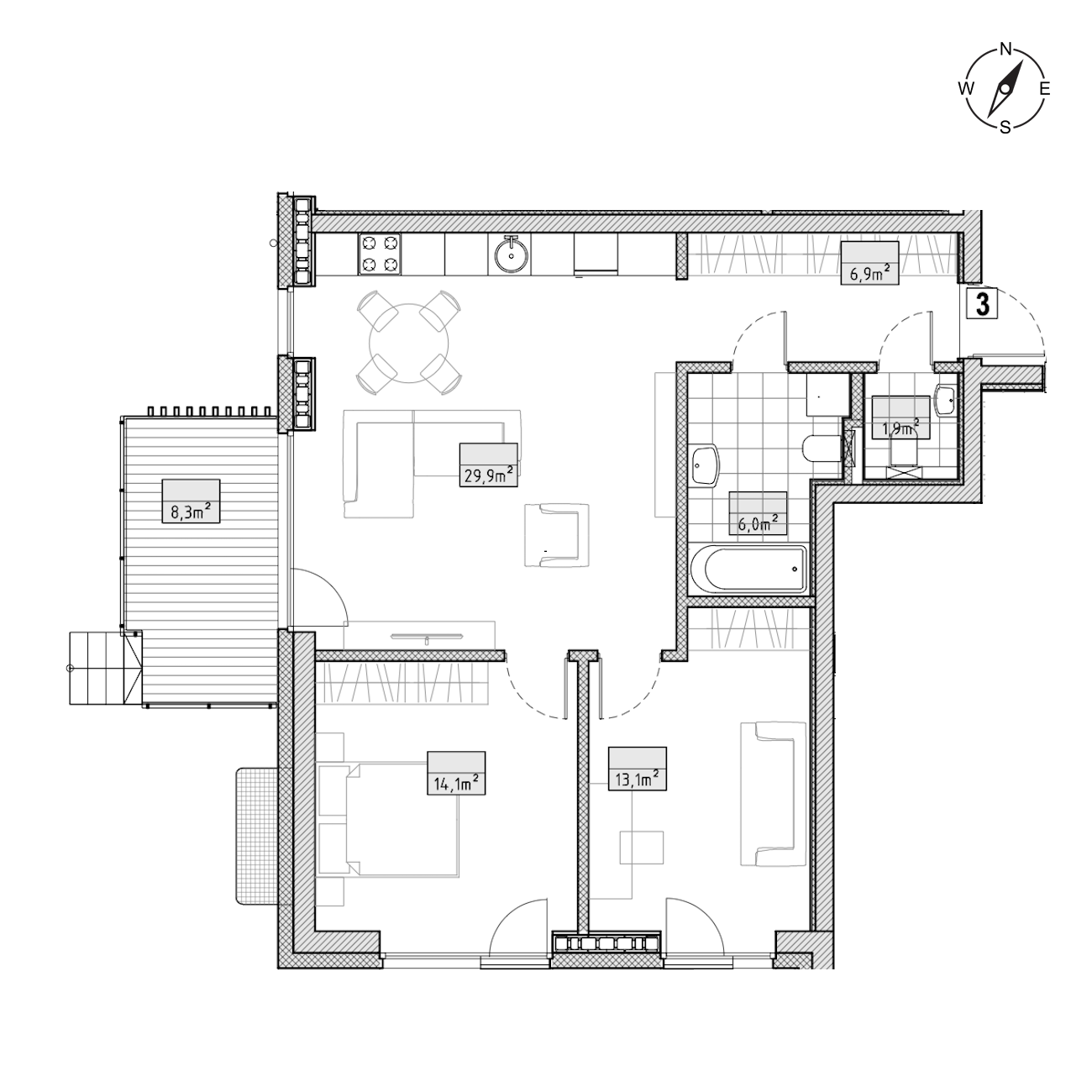 | No. 3 | 1 | 3 | 2 | 80.2 m2 | 3 200 EUR | 256 640 EUR | Reserved | Terrace | |