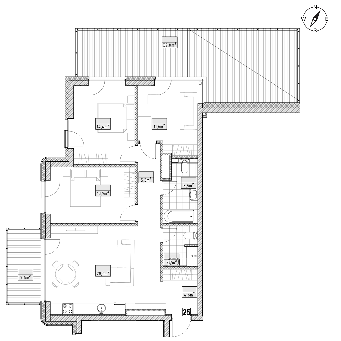 | No. 25 | 4 | 4 | 2 | 131.6 m2 | 3 200 EUR | 421 120 EUR | Available | Balcony, terrace | Apply |
