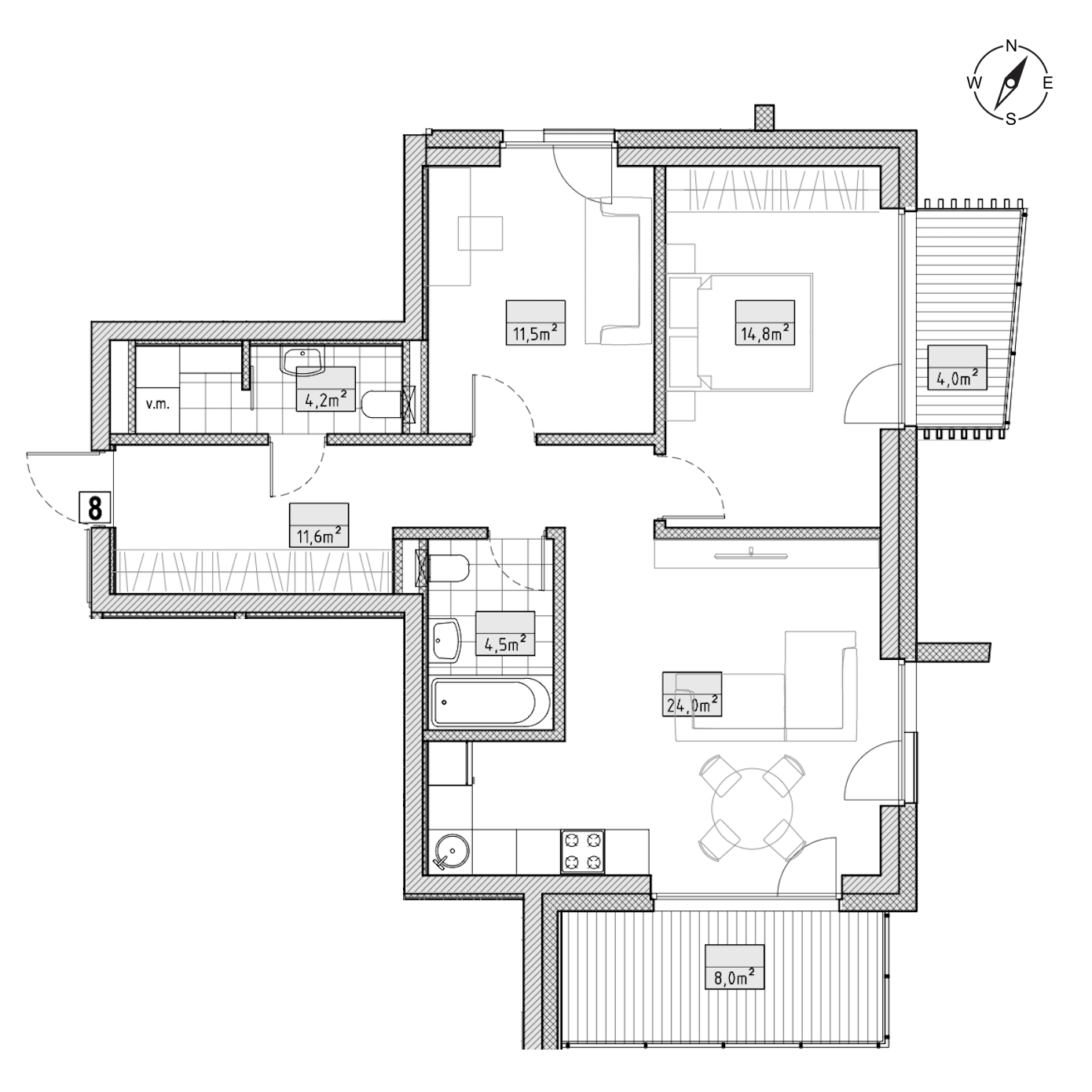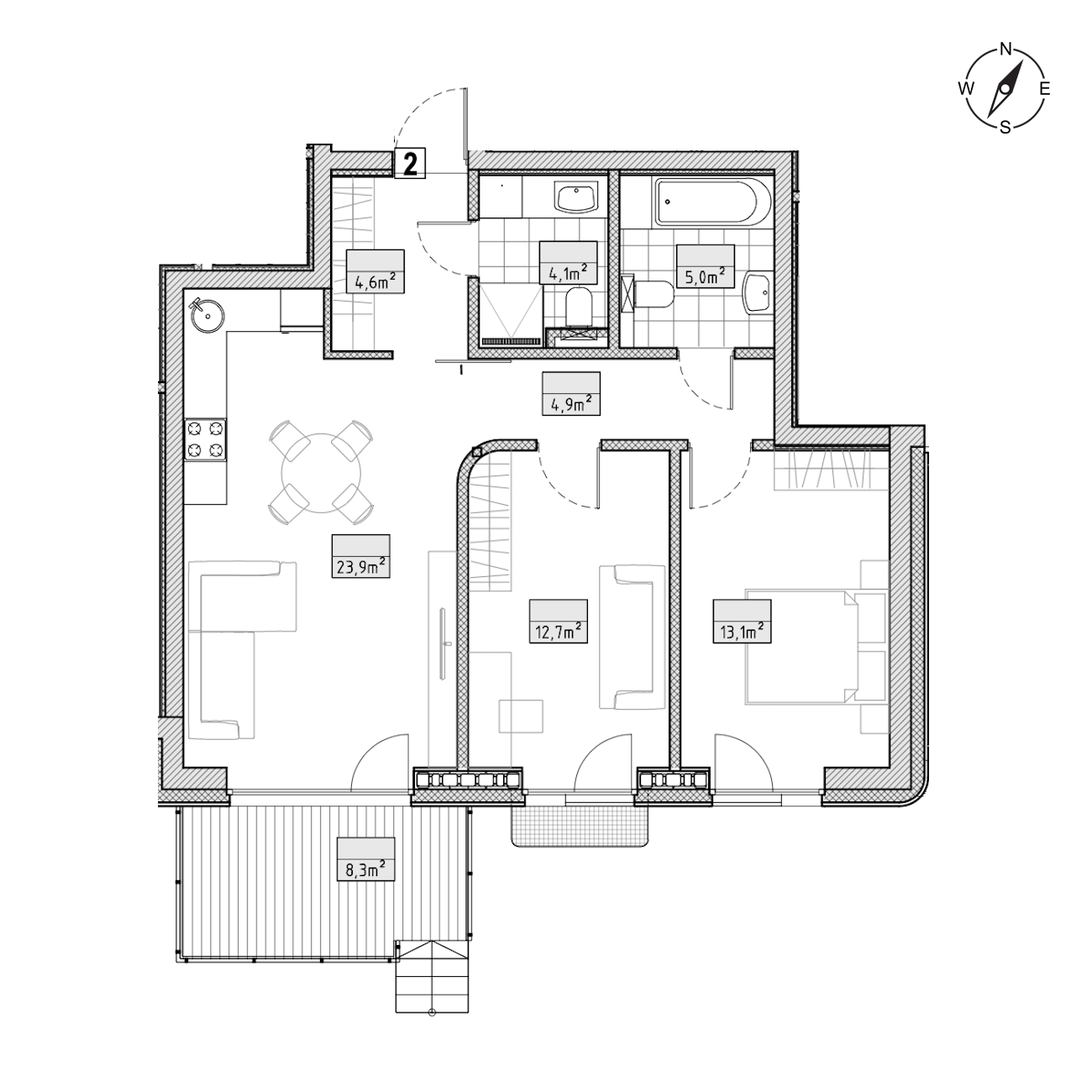 | No. 8 | 2 | 3 | 2 | 82.6 m2 | 3 200 EUR | 264 320 EUR | Available | Balconies - 2 | Apply |